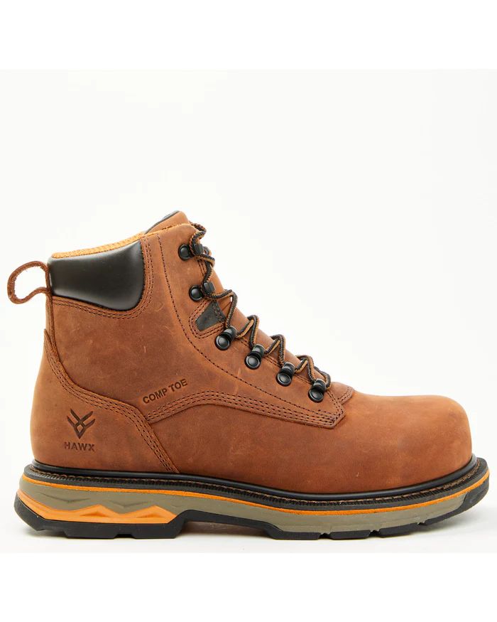 - Brand New Hawx Men's 6" Crew Lace-To-Toe Work Boots - Composite Toe | Dark Brown