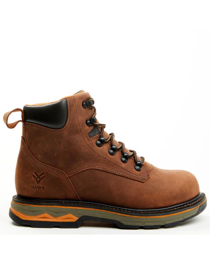 - Brand New Hawx Men's 6" Crew Lace-To-Toe Work Boots - Composite Toe | Dark Brown