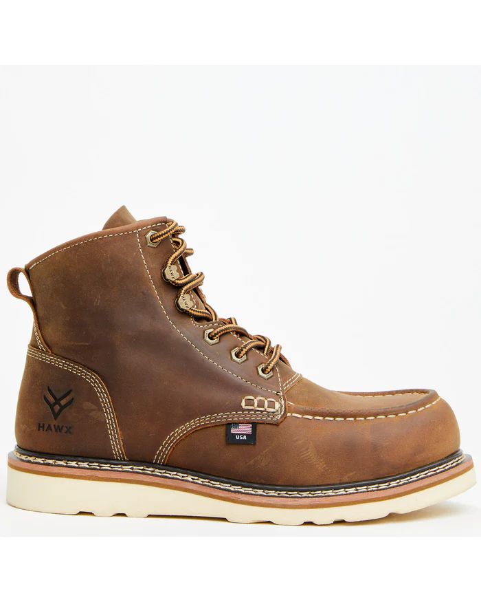 - Brand New Hawx Men's 6" Grade Work Boots - Moc Toe | Distressed Brown