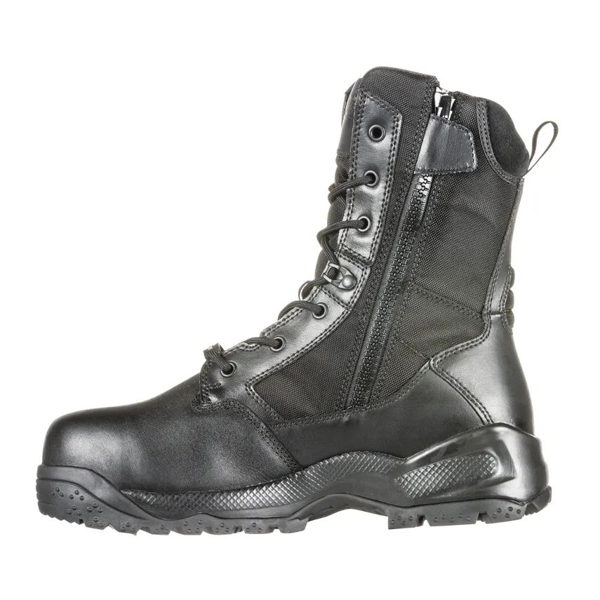 A renowned 5.11 Tactical boot steps up its profile with heightened performance and comfort. The A.T.A.C. 2.0 8" Shield lightens things up but remains deadly serious about delivering superior safety in the most unforgiving environments. An added 5.11 SlipStream waterproof / bloodborne pathogen membrane, ASTM/CSA CARBON-TAC toe, and an ASTM/CSA puncture resistant board provide critical protection. Full-length dual durometer Ortholite footbed works to keep your feet cool, dry, and comfortable all day every day. Another addition, the Achilles heel flex zone, gives a critical part of your foot more range of motion without compromising support and stability. This boot is so tough, it can live up to the ASTM 2413-17 M I/75 C/75 EH PR standards, day in and day out. CSA Z195-09 rated for compression, cutting, abrasion, and electrical discharge protection. Shop the A.T.A.C. 2.0 Collection.