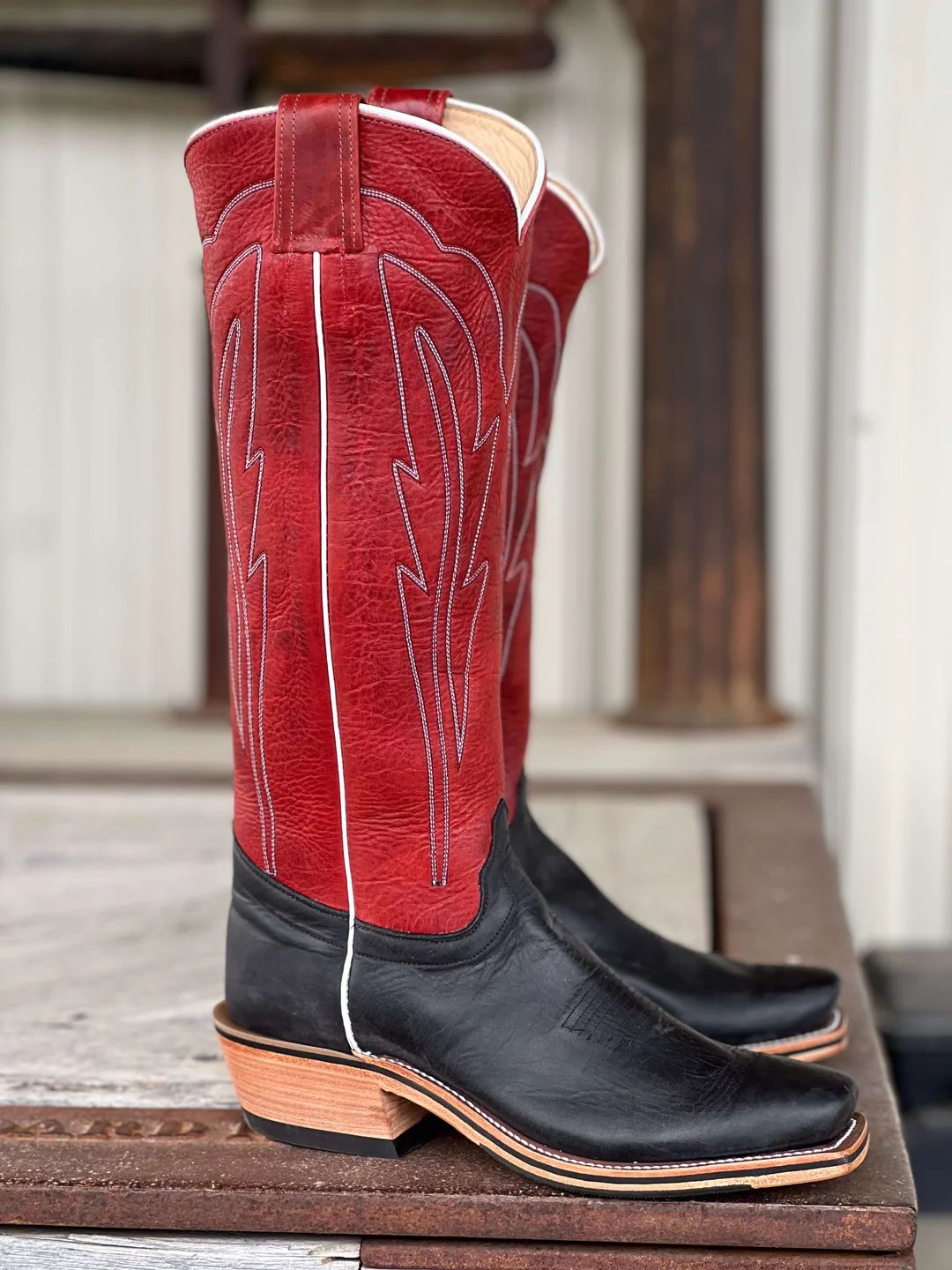 - New Arrivals Olathe Natural Brahma Bison Crepe Sole Boots - Tan/Red