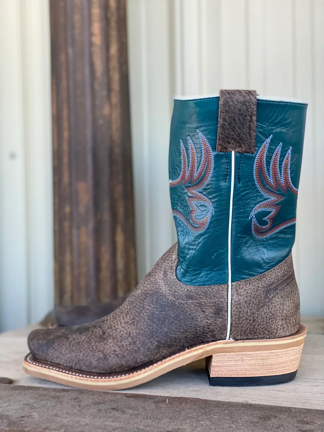 - New Arrivals Olathe Brown Mule Roughout/Jade Navajo Boots - Brown/Green