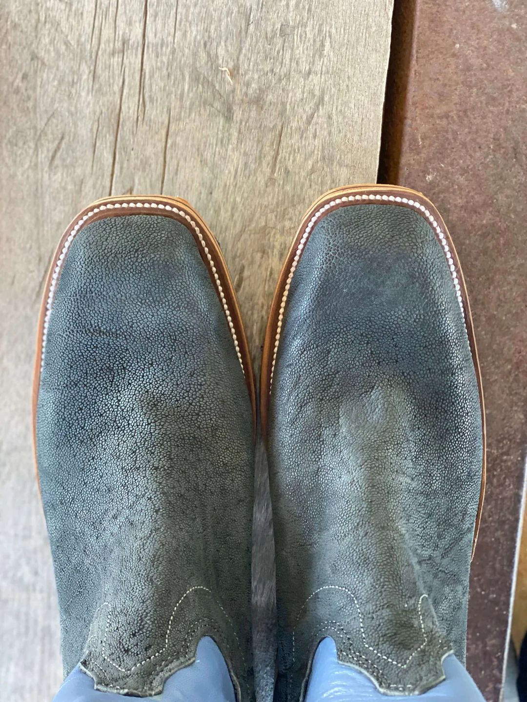 - New Arrivals Olathe Teak Crazyhorse O Toe Boots - Tan/Navy
