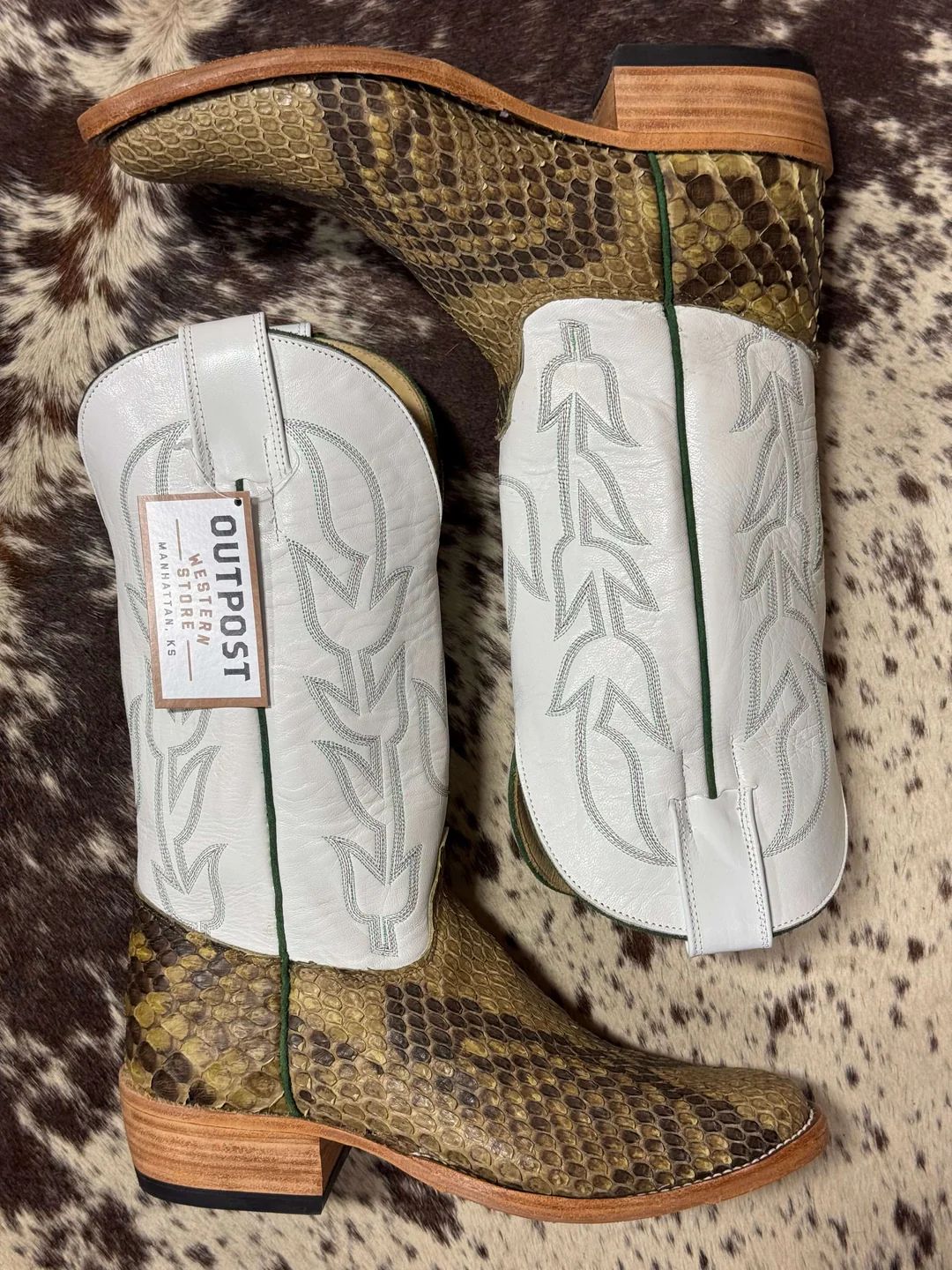 - New Arrivals Olathe Natural Brahma Bison O Toe Tall Top Boots - Tan/Red