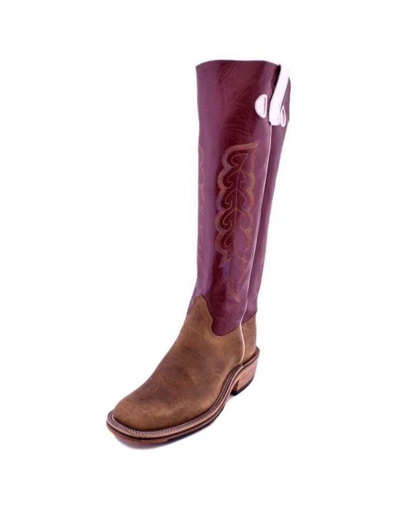 Outpost Exclusive Olathe Tall Top with Brahma Bison Vamps and 17" Sangria Kidskin Tops. This boot is built tough from the sole up! Hybrid soles are one of the toughest options when it comes to sole treatments. Pair them with a neoprene midsole and you have an extremely sturdy boot. Bison hide vamps are the perfect blend of comfort and durability, and they are easy to care for. This boot is made for hard work and just so happens to look absolutely gorgeous!
