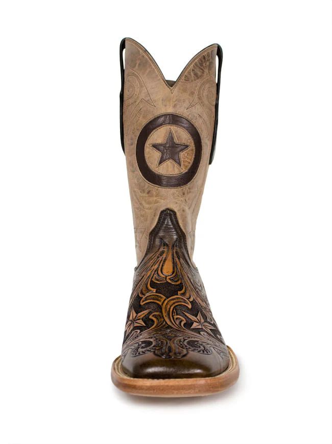 - Quick Ship Black Jack Men's Tooled Mahogany Boots - Tan