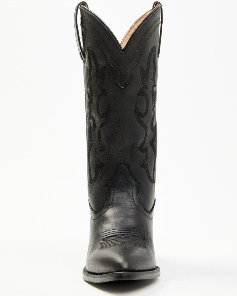 Intricate Western Stitching: The solid black silhouette is beautifully contrasted with intricate Western stitching, adding a touch of elegance and showcasing traditional cowboy boot artistry.