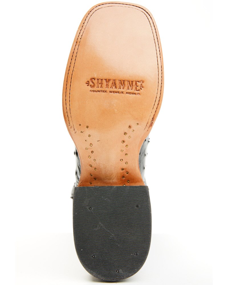 - Black ostrich skin vamp and black shaft with brown western stitching