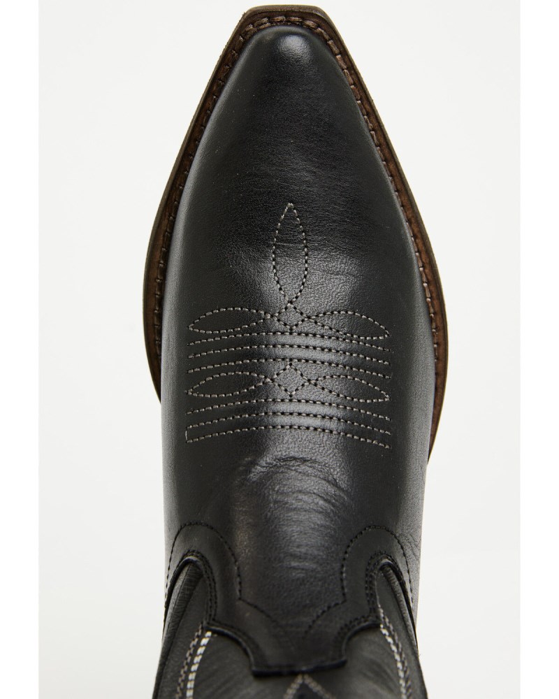 - Solid black design with western stitching