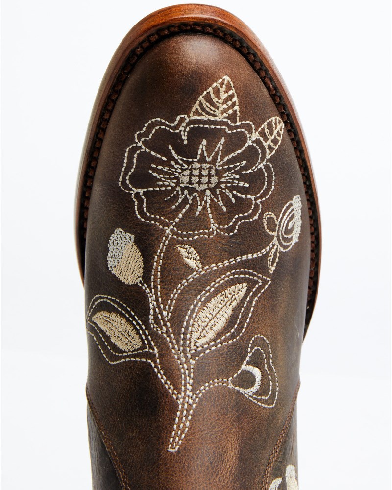 - Quick Ship Shyanne Latest Women's Mariel Floral Embroidered Studded Concho Western Boots - Snip Toe | Brown