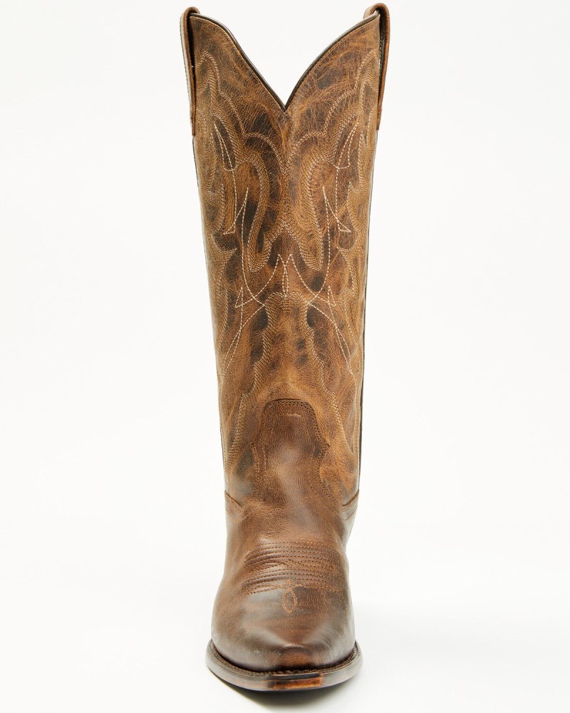 - Solid brown design with western stitching