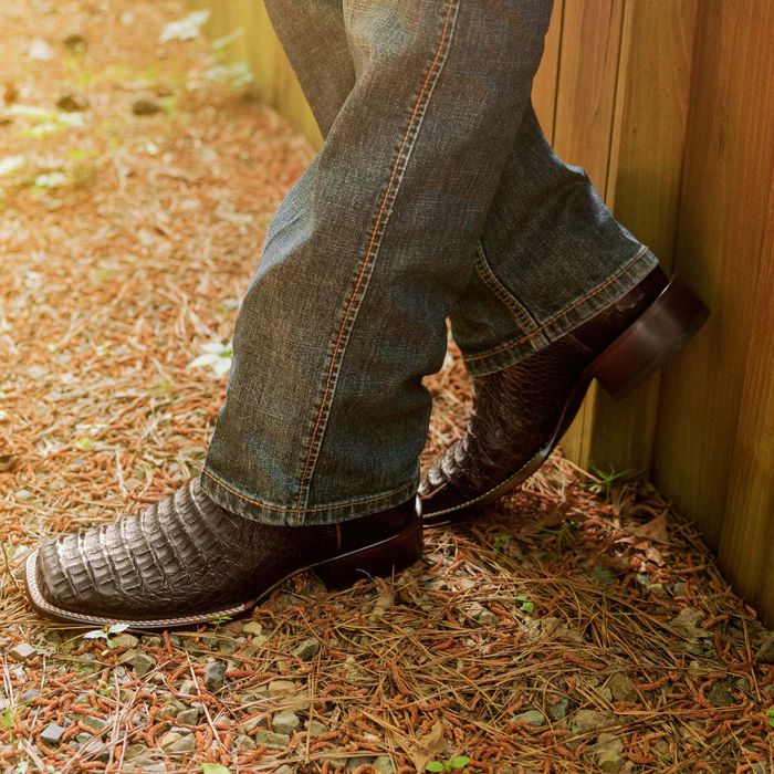 The Jake is a stunning Square Toe profile made from our handsome Caiman Hornback leather. This beautiful cut of Caiman hide comes from the back and top of the animal, and has a rugged, textured appearance that is coveted by boot lovers everywhere.