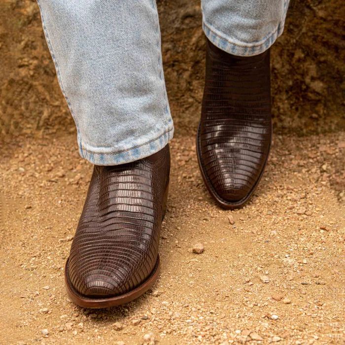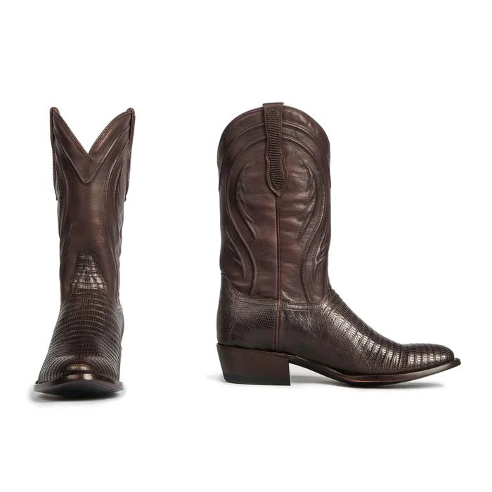 The Marcus is our classic Western-style cowboy boot in RUJO's exceptional Teju Lizard leather. Available in two rich colors, these exotic boots radiate luxury from every seam. Dress it up or dress it down