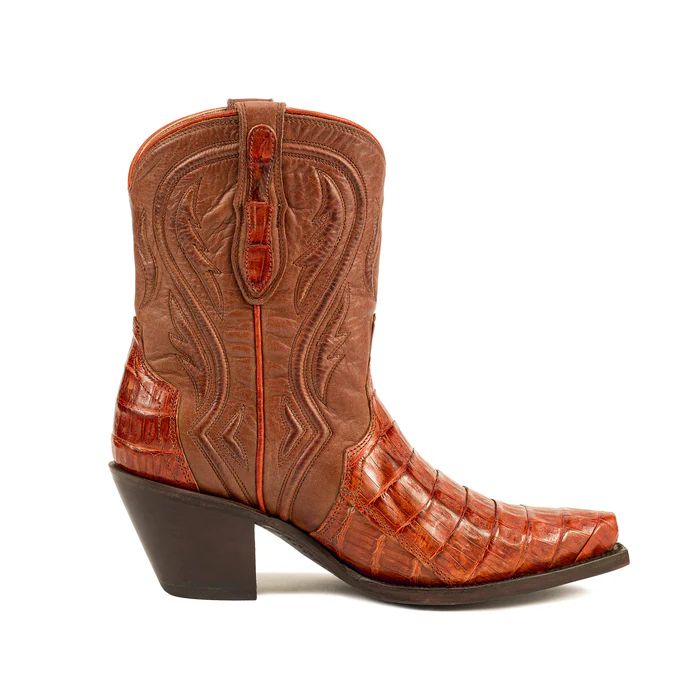 The Anna is a stunning exotic cowgirl bootie made from RUJO's opulent Caiman Tail leather. The 2.5-inch heel and Snip Toe shape give The Anna an iconic silhouette that cowgirls everywhere have come to love. See why today.
