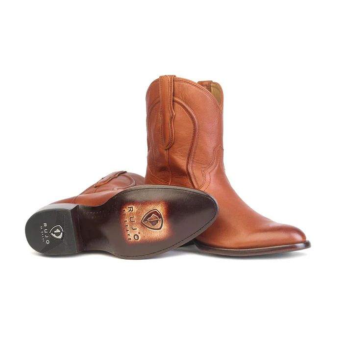 The Myra is a Cowgirl Bootie handcrafted from RUJO's supple Caravan Calfskin. Joined with our famous Cloud Walk Memory Foam insole, technology, the Myra delivers top-notch quality and comfort. The Myra features a 2.5" heel and an iconic R-Toe shape.