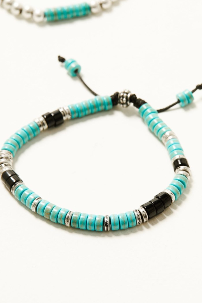 - Bracelet 3: Adjustable bracelet with turquoise toned beaded details