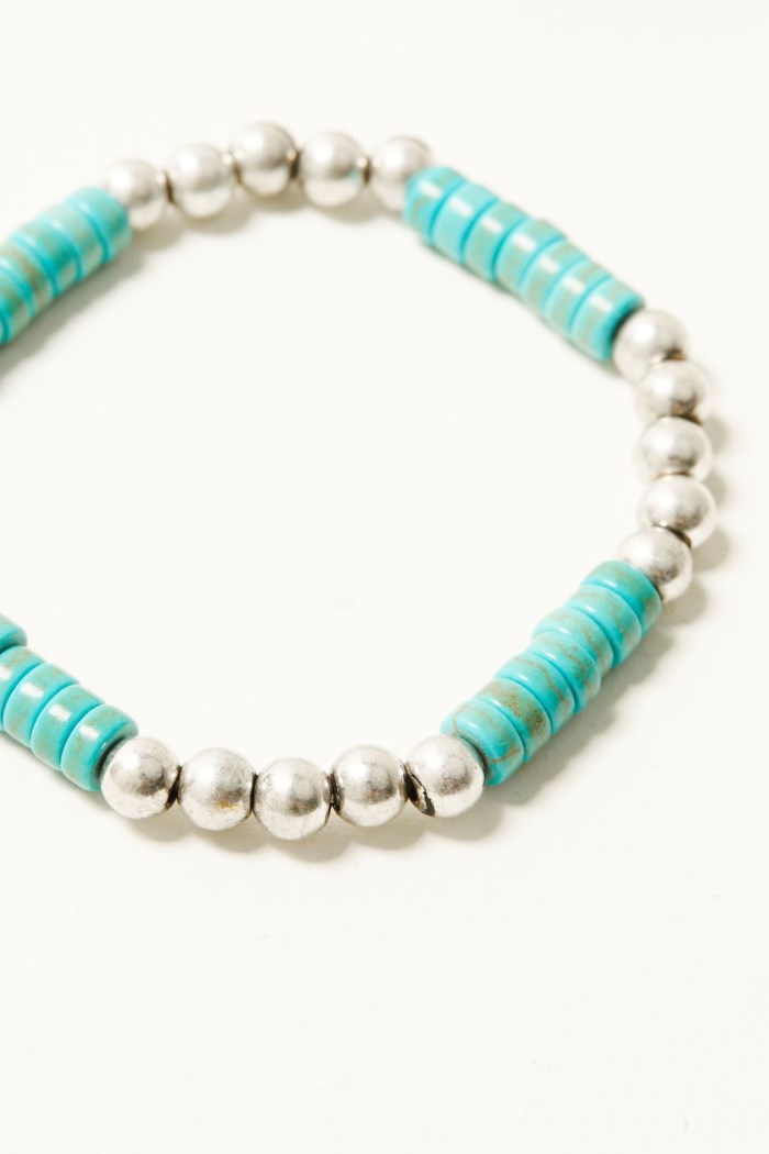 - Bracelet 4: Elastic bracelet with turquoise toned beaded details
