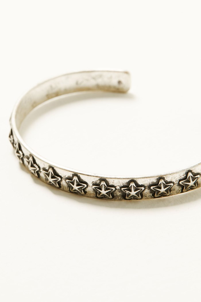 - Bracelet 2: Silver-toned cuff with star painted details