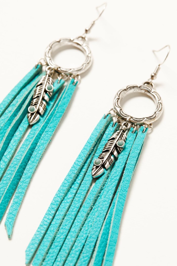 - Turquoise fringe accents