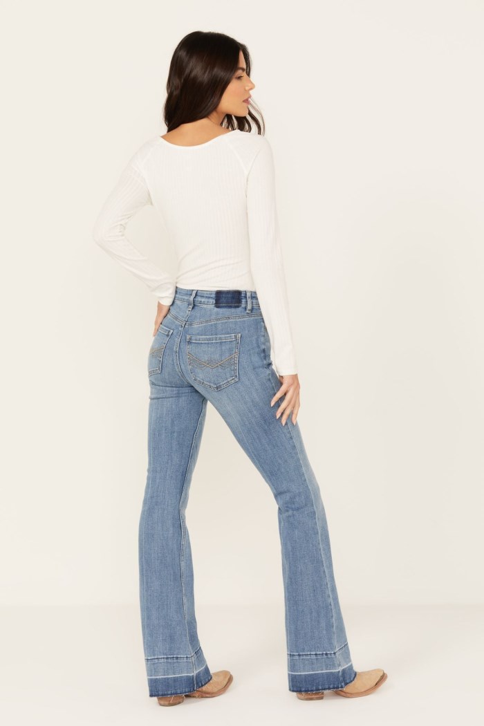 - Bootcut leg with extended hems