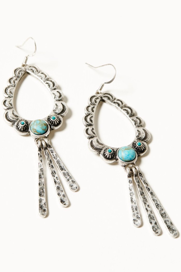 - Turquoise-toned stone details