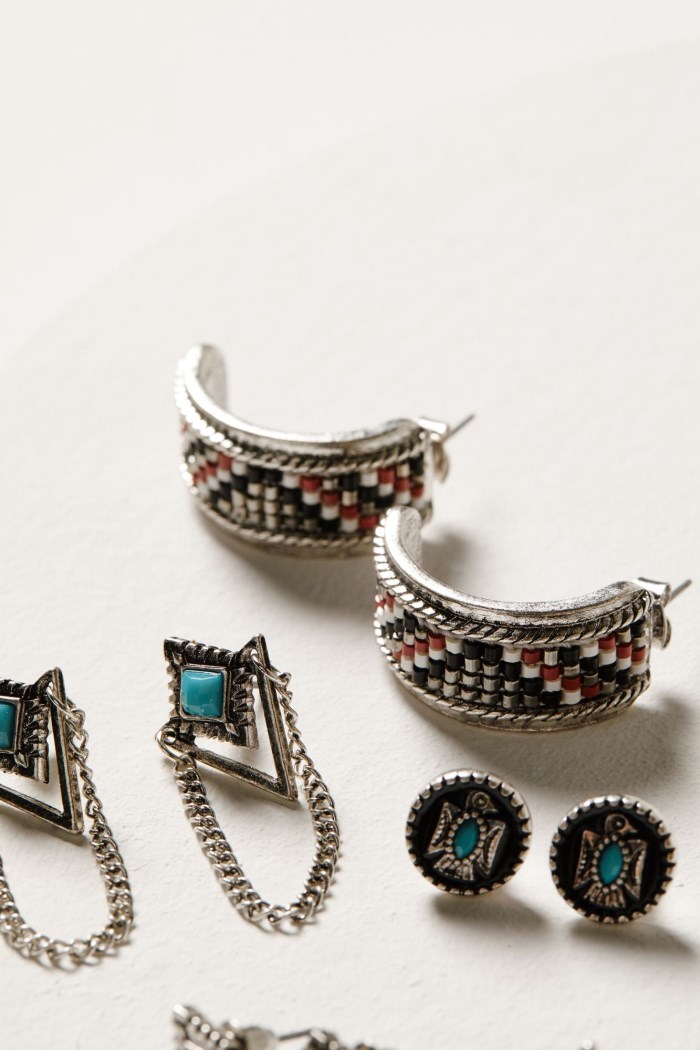 - Set includes five pairs of stud-back earrings