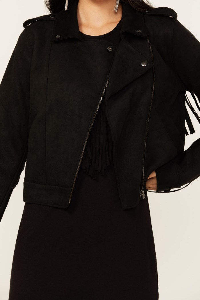 - Special Offer Idyllwind Women's Odessa Faux Suede Fringe Moto Jacket | Pink
