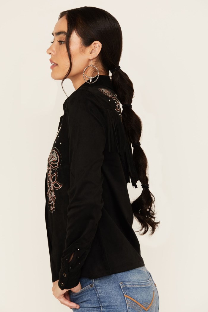 - Special Offer Idyllwind Women's Nance Studded Fringe Faux Leather Jacket | Black