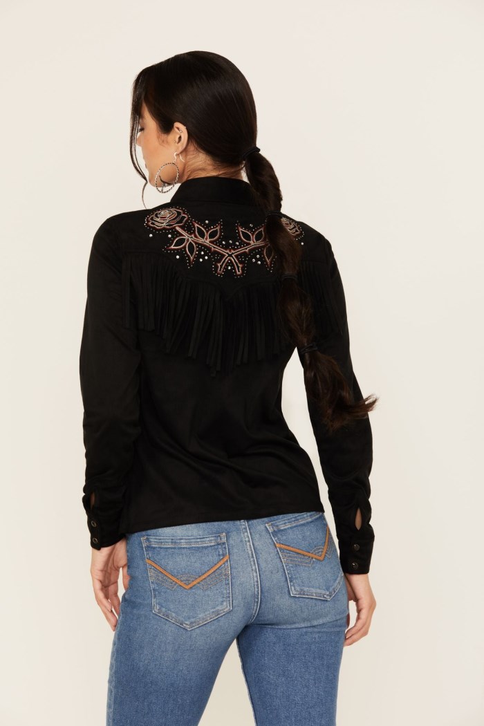 - Fringe accents on back yoke