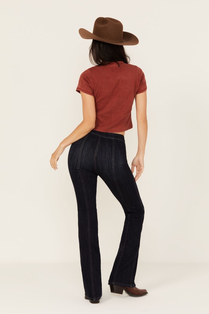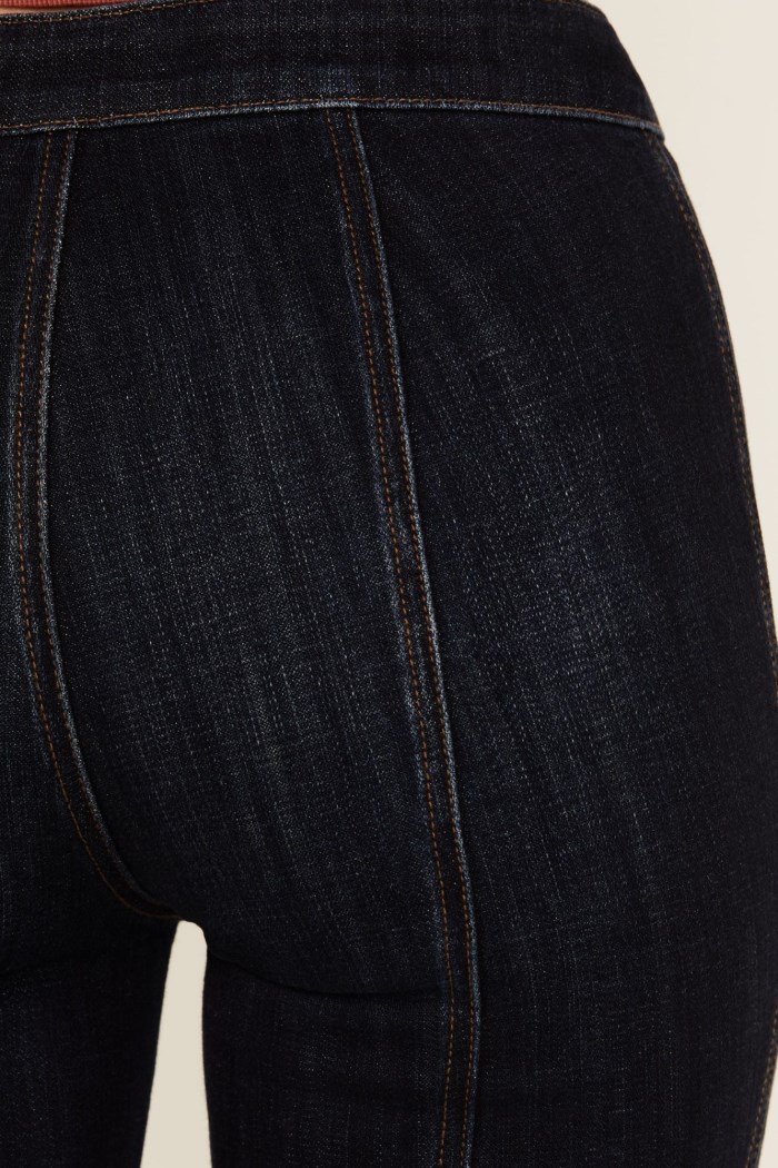 - Bootcut leg with finished hems