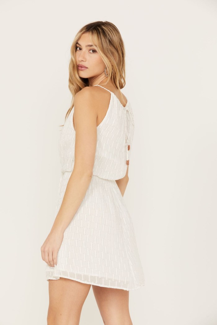 - Self tie closure on back with keyhole design