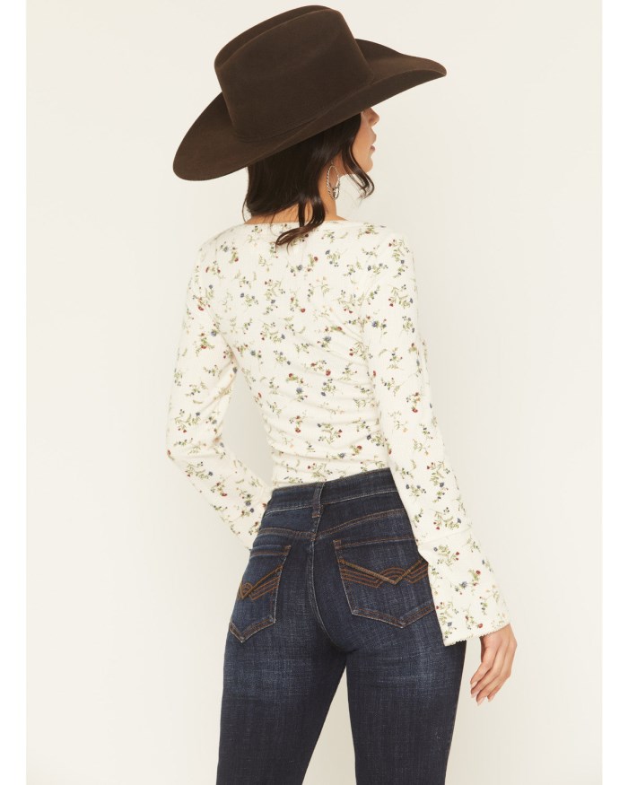 - Solid cream design with allover floral print