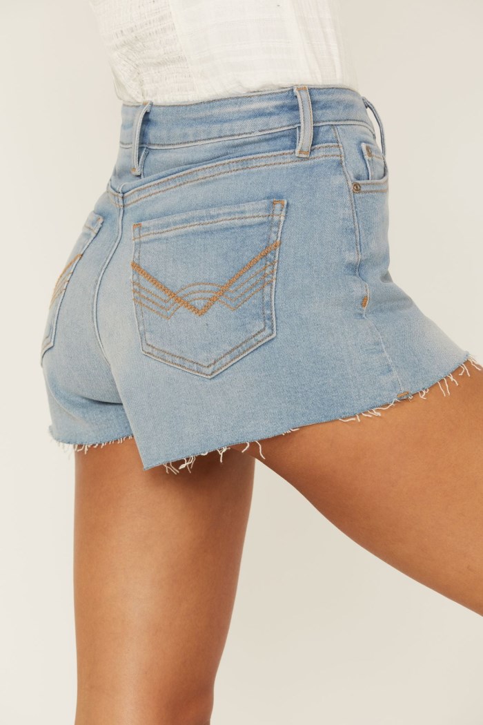 - Contrast embroidered back pockets