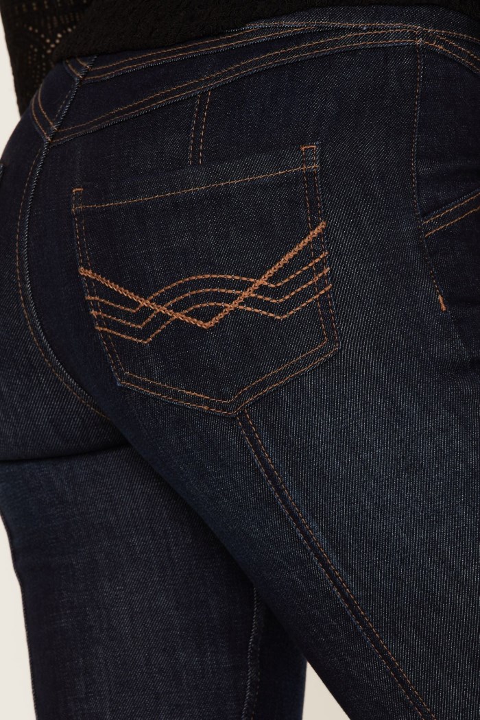 - Dark wash with contrast top stitching