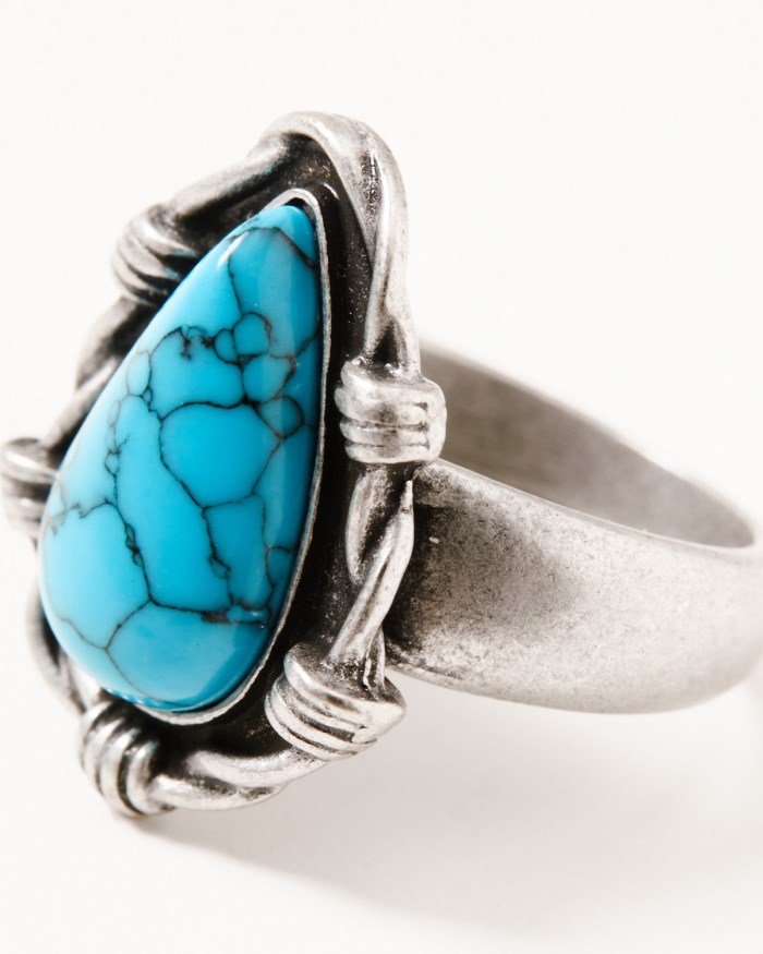 - Ring 3: Silver-toned hardware with turquoise toned concho center