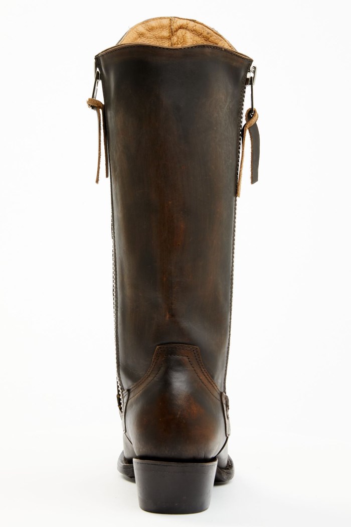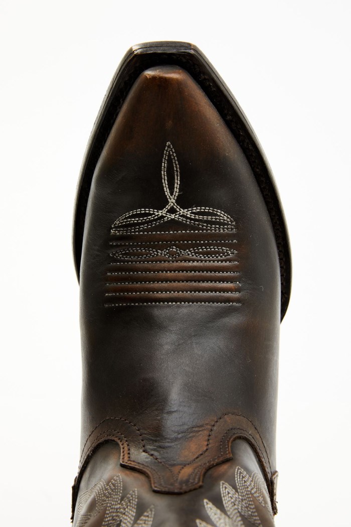 - Distressed leather design with burnished toe