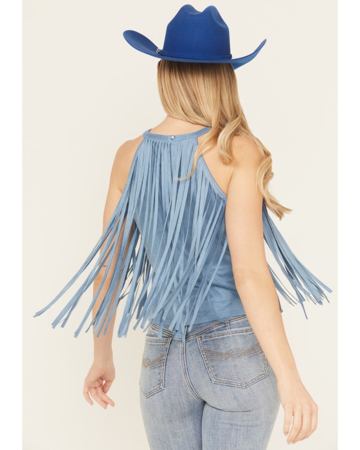 - Special Offer Idyllwind Women's Banbury Printed Faux Suede Fringe Moto Jacket | Steel Blue