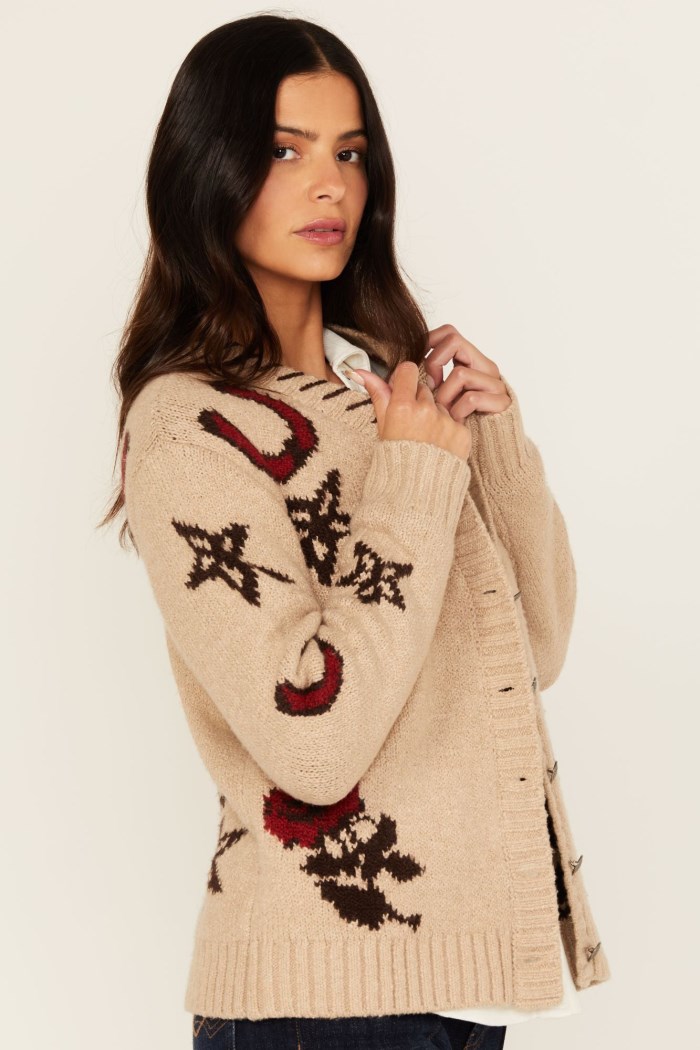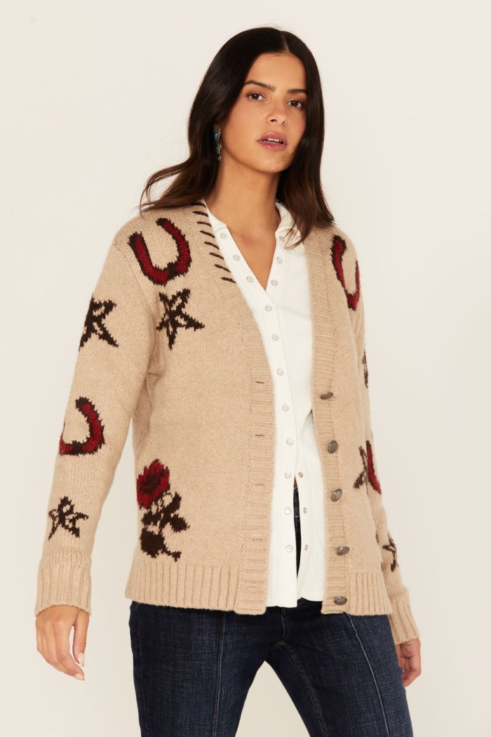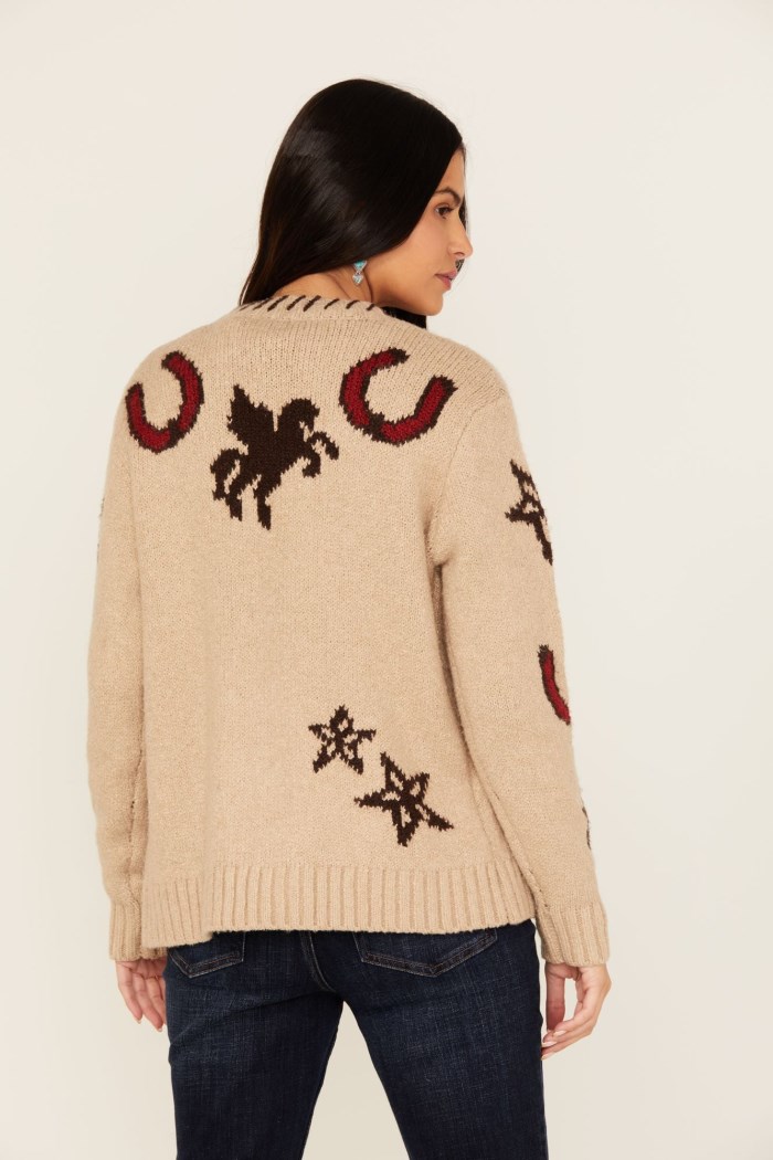 - Horseshoe, star, and rose accents throughout