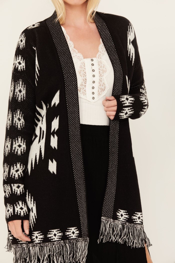 - Black with white Southwestern print throughout