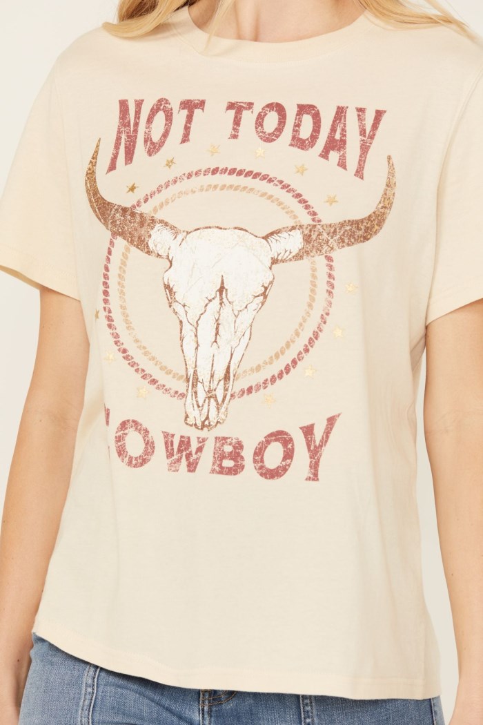 - Steer head and rope graphic on front with "Not Today Cowboy" and metallic accents
