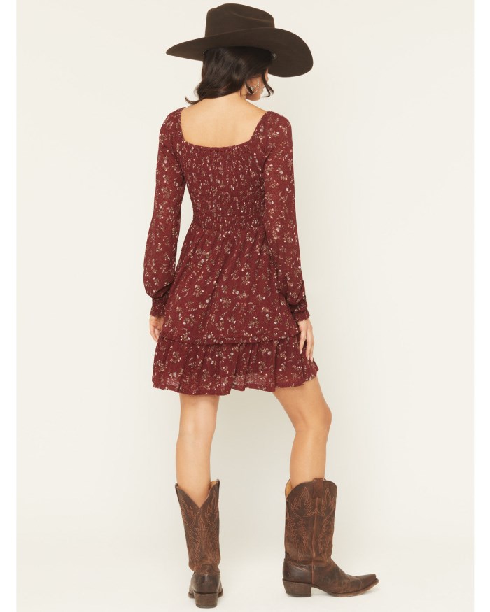 - Red design with floral print details