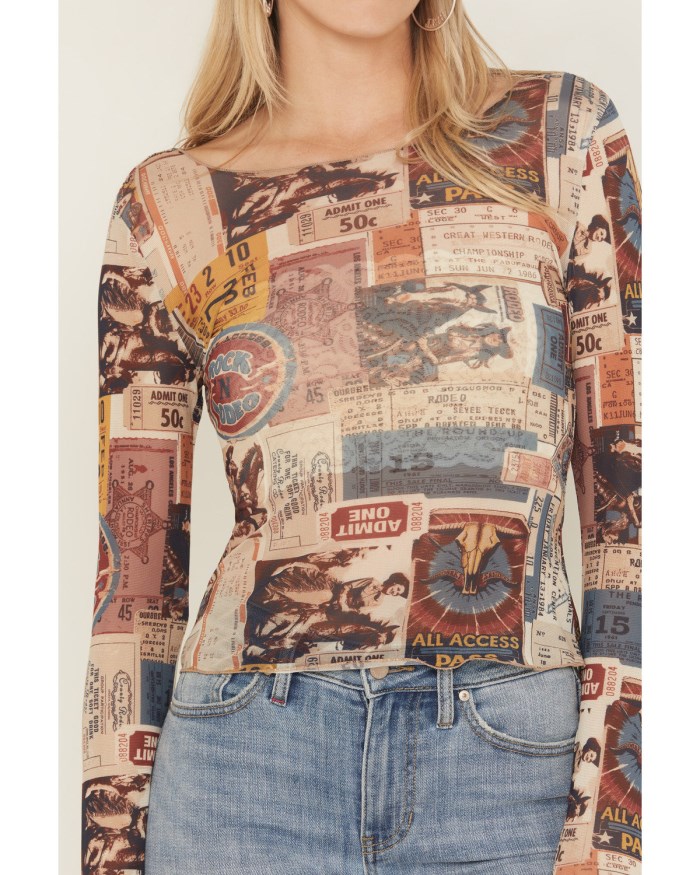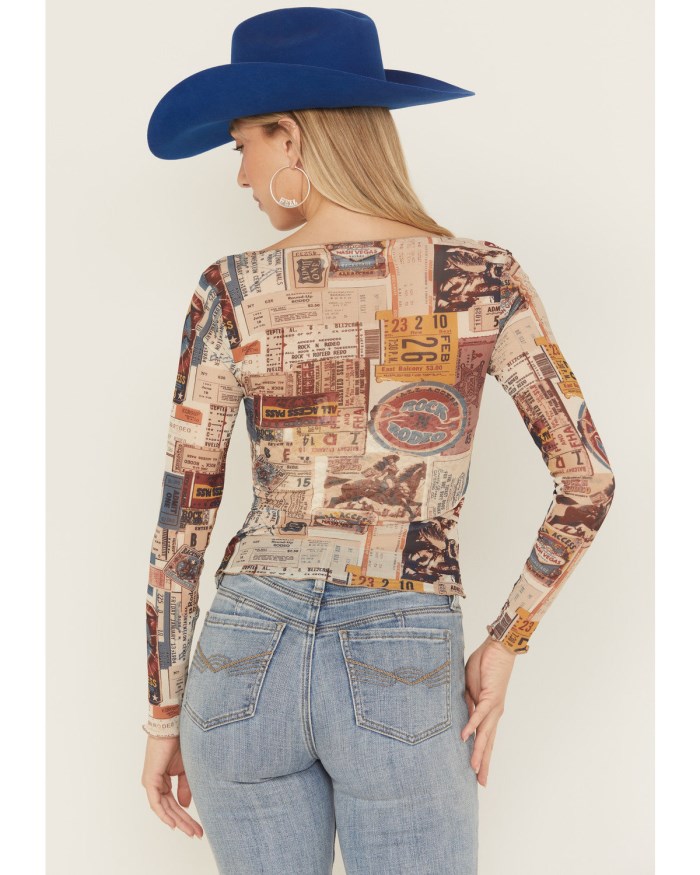 - Rodeo ticket conversation print throughout