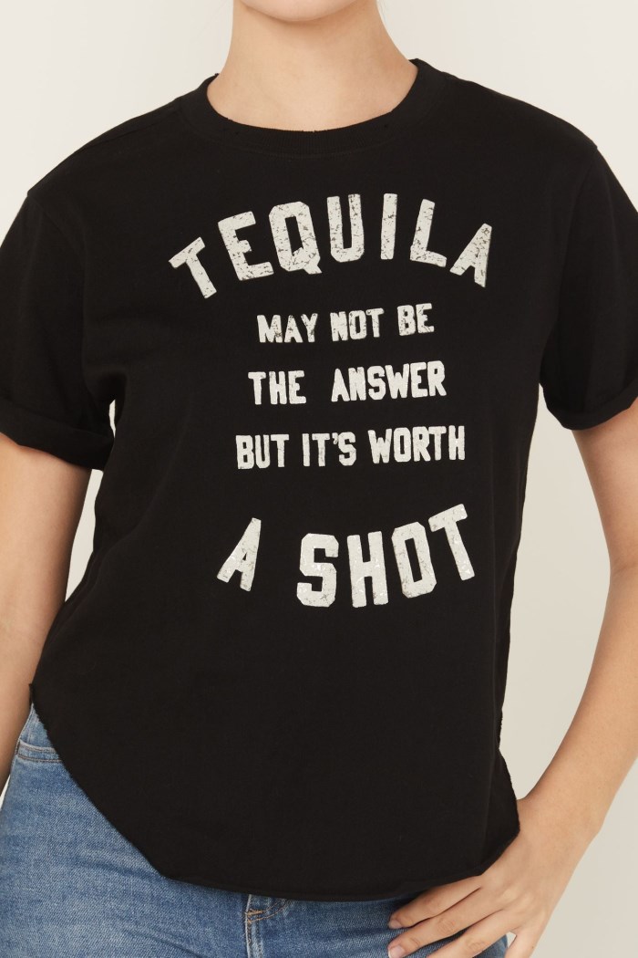 - "Tequila May Not Be The Answer But It's Worth A Shot" graphic print on front