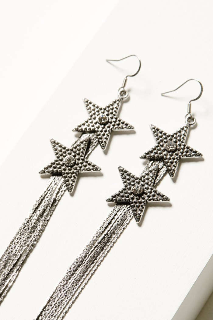 - Silver chain fringe