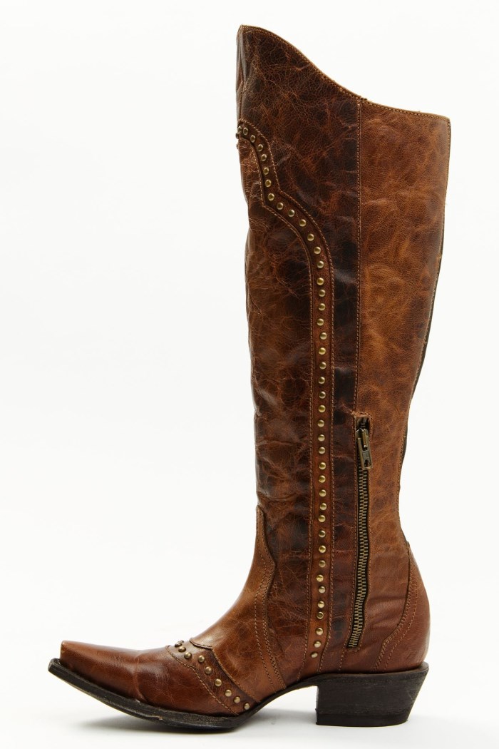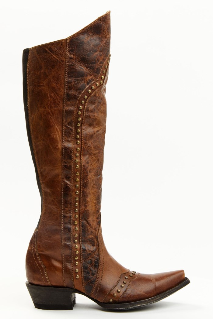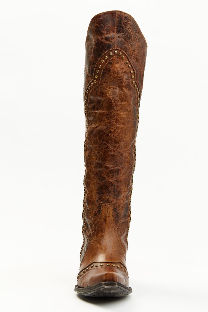 - Studded rows down upper shaft and vamp