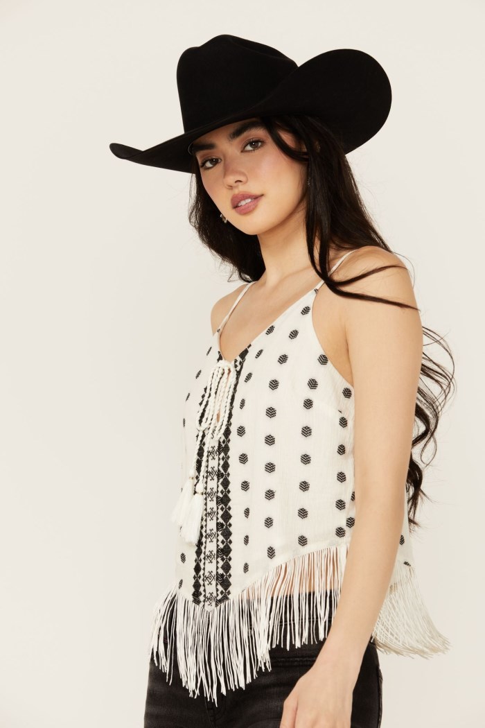 - Special Offer Idyllwind Women's Briarwick Jacquard Print Fringe And Lace Tank Top | Black
