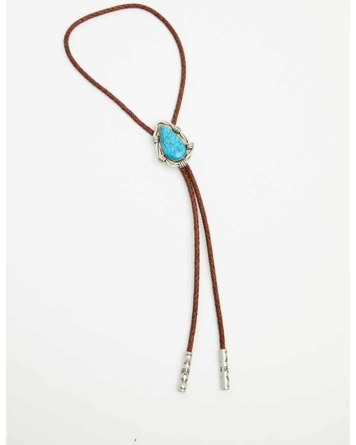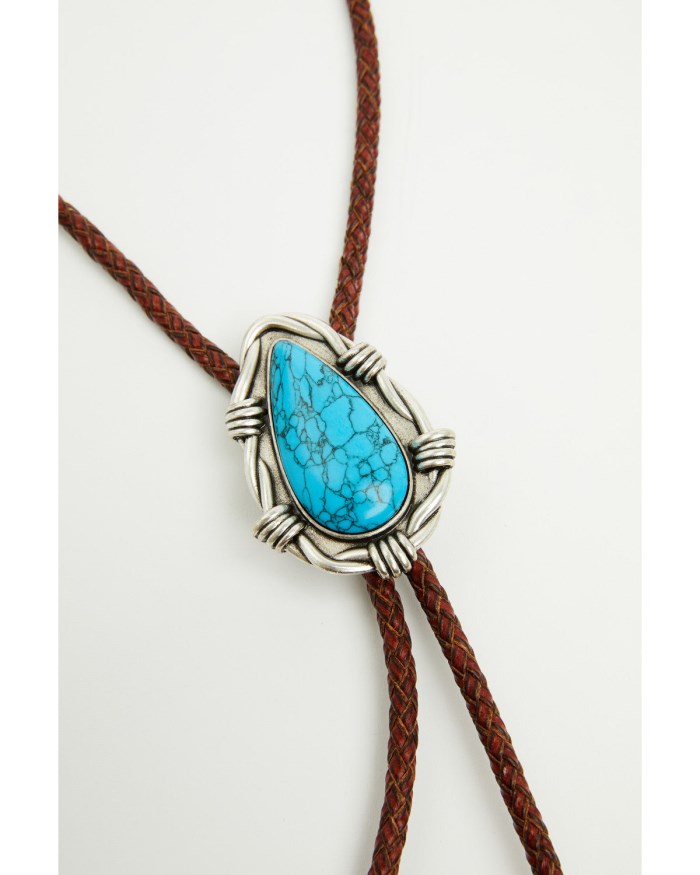 - Synthetic turquoise teardrop pendant with barbed wire frame