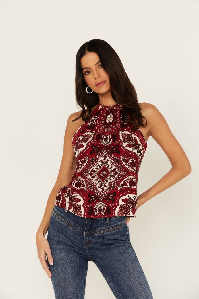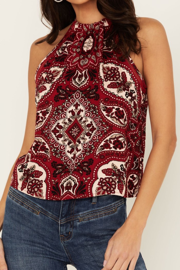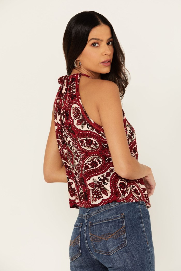 - Special Offer Idyllwind Women's Rose Printed Crop Top | Maroon